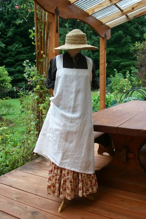 A sleeveless garment worn as an apron, may be worn as decorative as well as a protective apron, open in the back.